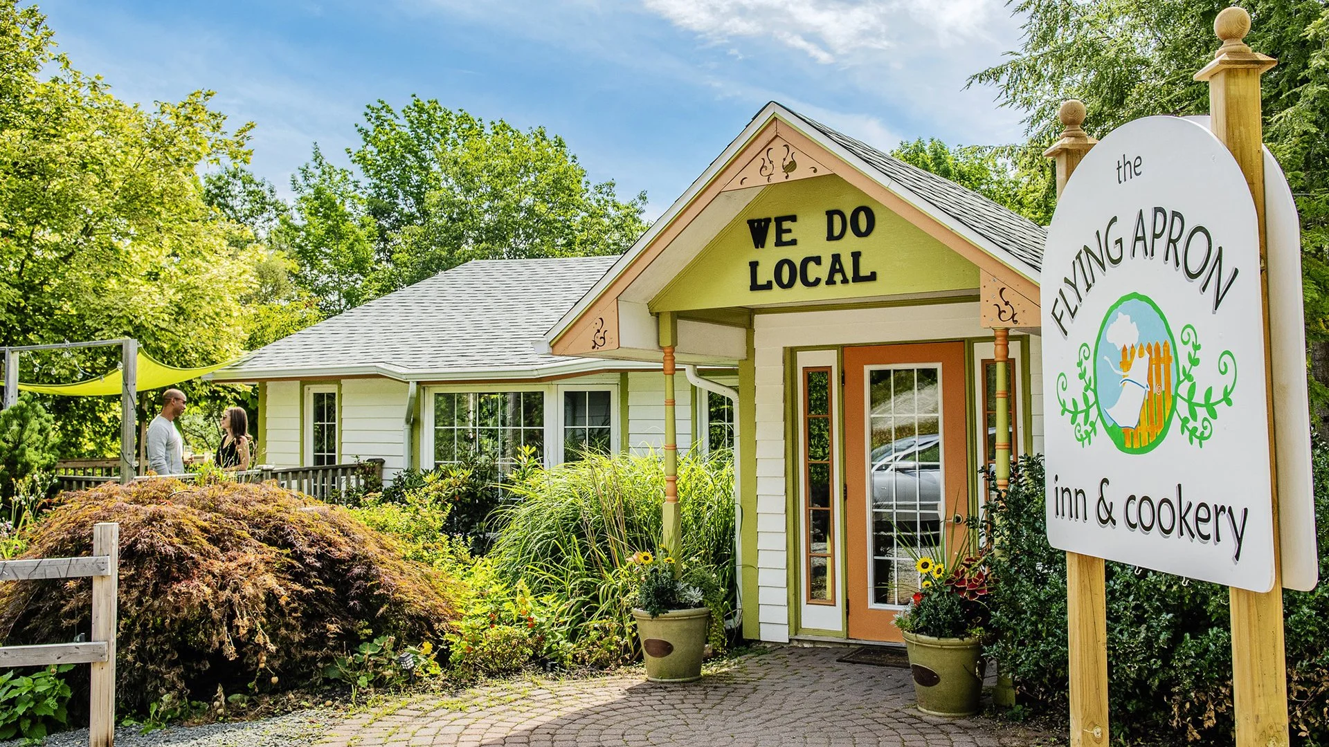 Take yourself on a getaway to the heart of Nova Scotia’s farming country to this one-of-a-kind culinary destination, The Flying Apron Inn. This renovated historic building features a charming 4-star inn and many on-site amenities for guests to enjoy, including an award-winning licensed Cafe, stunning cookery school, art gallery, gourmet food shop and used book store.